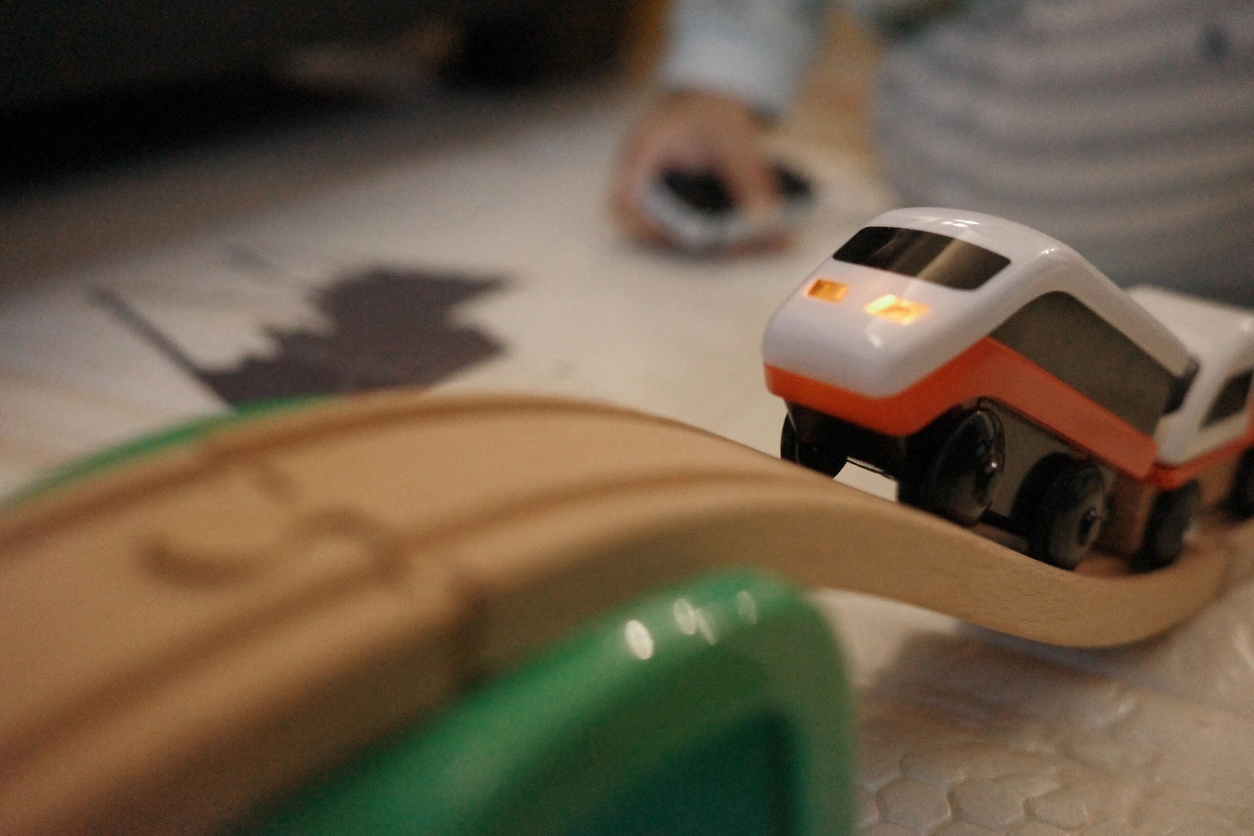 最近读了朋友推荐的《真希望我的父母也读过这本书》,知道陪小孩需要全心全意,是不是边玩手机边敷衍小孩是能察觉出来的。于是晚上回到家就跟小孩一起把火车开开,他会兴奋地说“火车来了!”,又说“火车走了!”。