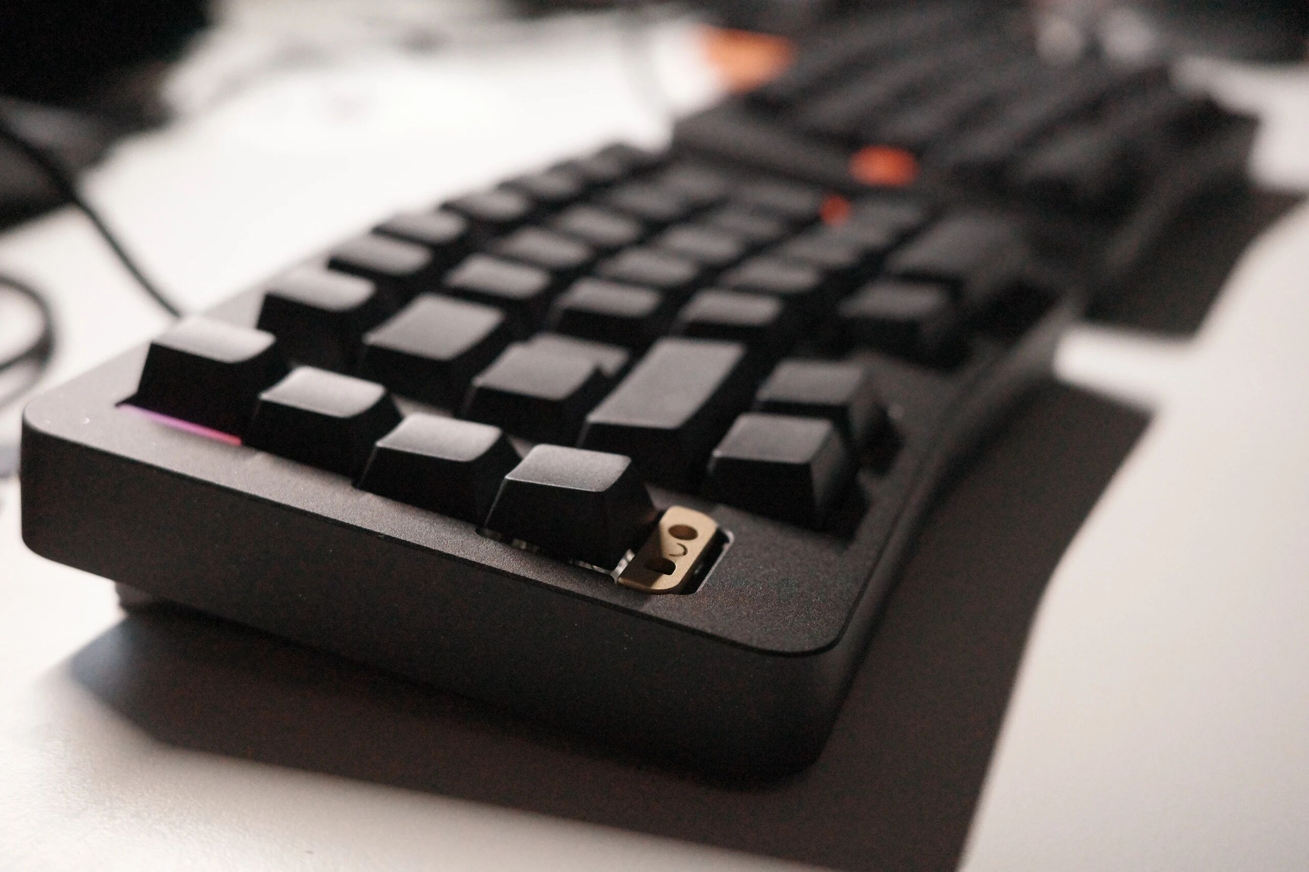 最近有点怀疑肩膀僵硬跟久坐打字有关,就买了个QK Alice Duo,配了Cherry茶轴(我挺喜欢Cherry茶轴的),淘宝随便买了套Alice配列的黑色键帽。